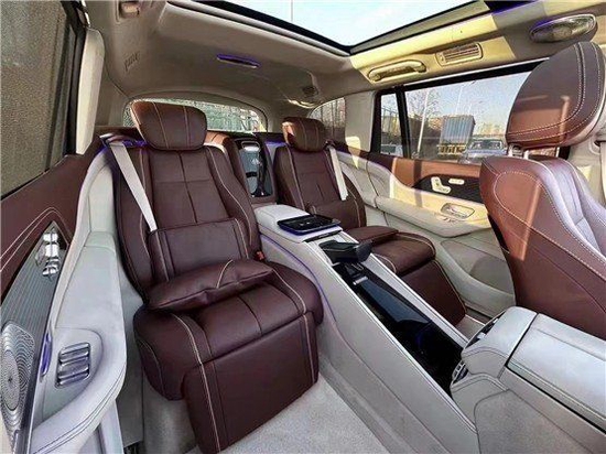 22款奔驰GLS450改装升级迈巴赫保留了与奔驰GLS相同的车身轮廓及线条,同时加入了更多象征着豪华的细节设计,迈巴赫的字标,层次分明的尾灯、雾灯与排气尾喉,让尾部也凸显了与众不同的气质风范。