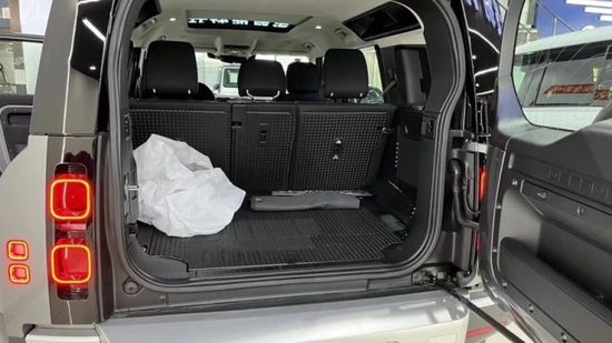 路虎卫士侧面的造型更有辨识度, 线条十分硬朗又不失圆润。在接车尾的地方,有一个伸缩爬梯,上下车顶行李架取放物品也更加方便。酷黑特别版车型也是全系车型中唯一标配双色20吋钻石切割轮毂的车型,其余车型全部需要选装。