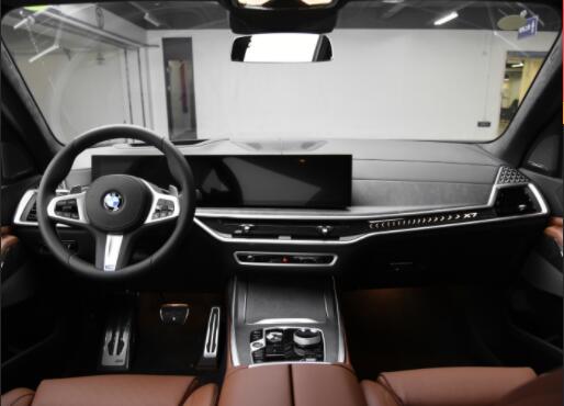 23款全新宝马X7内饰方面,宝马X7的内饰布局与全新一代X5(配置|询价)如出一辙,用料会讲究些。全新X7的中控台采用了大面积的真皮材料包裹,并且在中控部分镶嵌浅色的木纹饰板,配合上深下浅的内饰配色。