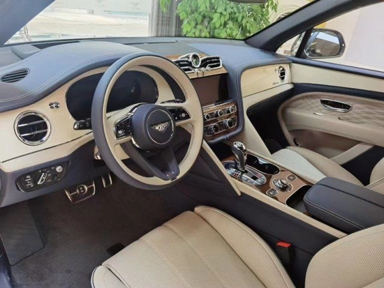 选装配置: 1。 添越炫黑套件 2。 22英寸十幅铝合金黑色机械切割轮毂 3。 自正式轮毂中心盖-by Mulliner 4。 4座舒适座椅配置并配有后中控台 5。 特别定制外漆 6。 MULLINER LED迎宾灯 7。 亚麻白钢琴木饰面板-by muliner 8。 前座椅背面小餐桌 9。 3幅式双色加热打孔方向盘 10。 宾利后排娱乐系统