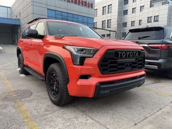 23款丰田红杉的外观采用了最新的丰田家族式设计语言打造,前脸大尺寸的进气格栅搭配造型犀利的大灯组以及厚重的下包围,整个前脸看起来十分硬派。侧面可以看到它的侧面线条和LX600 (配置|询价)有些类似,不过它比LX600看起来更加的壮实。
