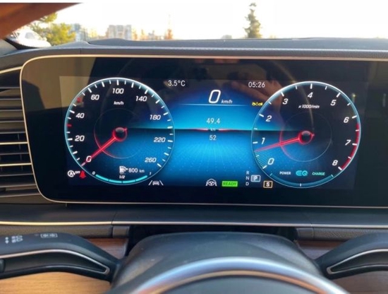 新款奔驰GLS450的内饰配了实木/皮革组合的多功能方向盘和带有三种颜色及亮度调节的环境氛围照明系统。值得一提的是新车配备的12.3寸的英寸液晶连体大屏幕,还增加有远程互联在线服务系统。