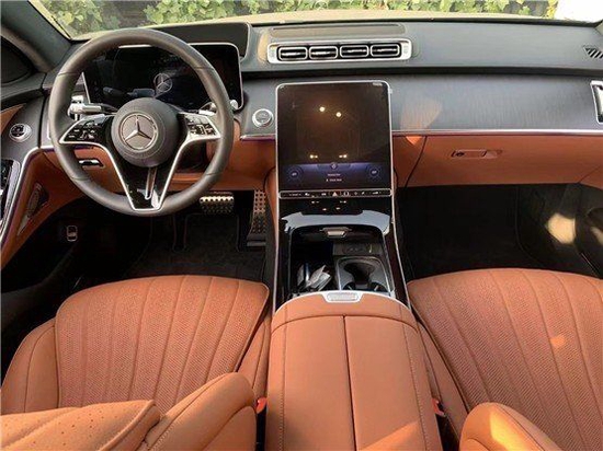 22款奔驰S500中控台垂瀑式中央触控屏从中控台纵向延伸,凸显出了简约的设计感。整个内饰的豪华感当然是无须质疑,触手可及之处几乎全用上了皮革包裹,配合带263个LED单元的动态氛围灯进一步升华了内饰氛围感。AMG Line的方向盘通过对造型的重新雕塑,变得更加立体。