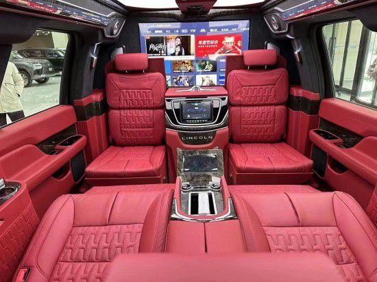 2023款林肯领袖一号后排的老板的航空座椅支持3档按摩,座椅的通风,加热,多段式的腿托,柏林之声的音响让你在出行还是商务的时候,都可以舒缓压力放松心情带来天籁般的感受,氛围灯可以多种颜色的切换,全看老板心情,后面前后双电视可以看任何大片,电动窗帘,电动的桌板还有咖啡机都是标配,老板座椅对面还有两个可以折叠的秘书座椅,整车采用4+2的布局,不需要使用可以电动收回,座椅中间的屏幕可以控制后排所有的娱乐设施,不仅有窗帘,玻璃也能一键雾化,保证隐私,法国的柚木地板也是非常的昂贵。