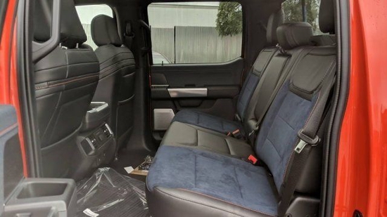 22款福特F150的内饰采用独特的中控台和门饰板面漆和真皮包裹的方向盘,方向盘可以上下前后调节。轴距3690mm,拥有宽敞的内部空间,全车蓝黑搭配的电动调节真皮座椅,用豪华舒适来形容一点也不为过。