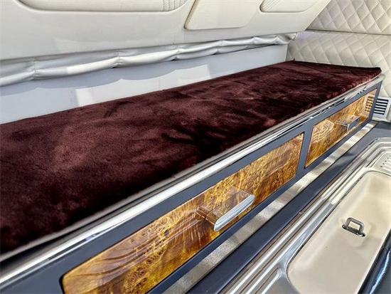 这台奔驰V260L巴赫圣母峰的灵魂采用的是奔驰V级,但是内部180的1775变1185化可谓是翻天覆地,驾驶舱仪表台被一整块的枫木饰板所替换,仪表台上方及主副驾驶座椅均进行了重新的真皮包裹。虽然老板不会亲自开车,但给司机带来的享受也不能差。车载压缩机式冰箱也被隐藏在扶手箱处。