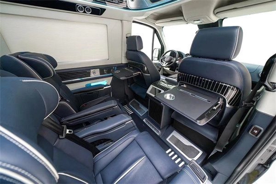 座椅方面后排搭载有两张高级航空座椅,触感细腻的真皮包裹,中央有真丝质感的风格纹路装饰,时尚感十足。在功能上,带有十项的座椅电动调节、两节舒适腿托、气动按摩、座椅加热通风等丰富功能。置身座椅之上,畅享温馨舒适的豪华氛围。奔驰斯宾特2张独立的航空按摩椅,后排3人沙发床。