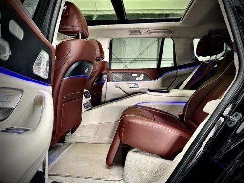23款奔驰GLS600 (配置|询价)迈巴赫新车提供四座和五座两种布局,其中四座车型第二排独立座椅相比普通版GLS更加靠后,并且带有巨大的腿拖,其后排座椅最大倾斜角度大43。度后排腿部空间最大达1.34米。中央由冰箱、控制台储物空间和手机无线充电台。