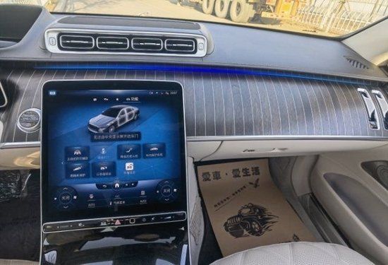 全新迈巴赫S580的内饰走的是科技路线,新车采用了三幅式的全新造型的方向盘,新车的中控台上采用了钢琴烤漆面板装饰,上面采用了多条横向的白色装饰条点缀。全新迈巴赫S 580采用了悬浮式的纵置大屏,液晶仪表采用了悬浮式的风格。