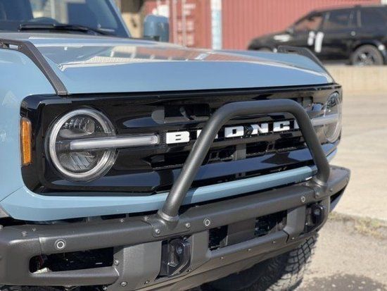 2023款全新福特烈马Bronco采用方正的整体造型,新车的发动机盖充满了规整的线条,圆形的头灯组延向中网延伸出光带,“Bronco”字样直接镶嵌于进气格栅中间。此外新车车门、侧/尾窗和车顶等位置采用了可拆卸的设计,十分硬派。