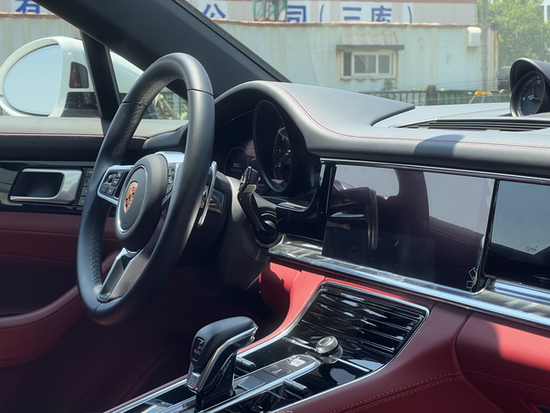 2021款保时捷帕拉梅拉2.9T 4S内饰经过彻底的全新设计,同时保留了保时捷的典型特征,中控台向车头方向升高,仪表盘呈扁平,显著加宽,模拟转速表被设计在仪表组的正中央。