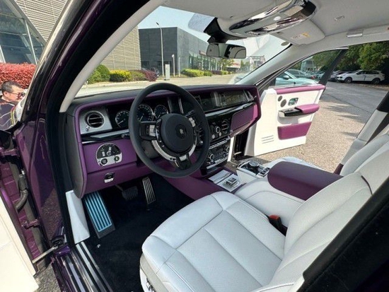 2023款全新劳斯莱斯幻影 (配置|询价)加长版双色定制外漆选配:22寸部分全抛光轮毂 车身同色轮毂盖发光气格栅 车身长单腰线-极地白CC画廊-石板纹理 Bespoke定制内饰前排座椅通风 后排中央固定2座航空座椅座椅滚边-定制紫 座椅缝线-定制紫RR头枕刺绣-定制 定制钥匙-定制紫后排窗等 新款限量版劳斯莱斯幻影加长版对开门是标志性设计劳斯莱斯幻影加长版是由90位技艺精湛的工匠在劳斯莱斯之家,