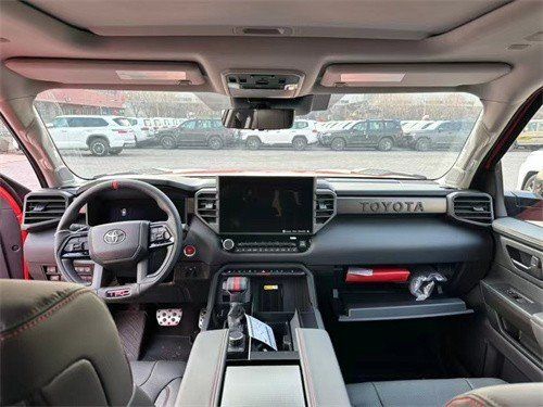 2023款丰田红杉越野版TRD PRO,颜色齐全,可选小天窗和全景天窗,无窗三款,18寸黑曜轮,越野轮胎,JBL音响,前排座椅通风加热,FOX减震,TRD越野底盘,电子后桥差速锁,多地形选择,雷达测距,360环影,座椅记忆,TRD运动方向盘,红色一键启动,矩阵大灯,半苯铵真皮座椅,2+2+3座椅布局,报价138万