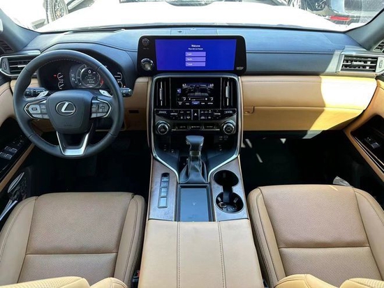 22款雷克萨斯LX600的启动按钮被设置在了中控屏一侧,并首次配备了指纹识别。内饰采用了家族式最新的设计风格,整体设计十分的简洁大气,采用了上下双中控屏幕的设计,进一步提升了整车的科技感。三幅式的多功能方向盘按键分布清晰,并且采用了银色的镀铬材质进行点缀,看上去也更加精致。