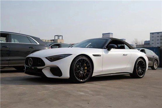 23款奔驰SL43车身侧面,AMG SL (配置|询价) 43车身不加多余的线条进行装饰,合金锻造式轮辋几乎与车身平齐,搭配隐藏式门把手设计,锐化了车身侧面线条的流畅感以及修长的跑车姿态。与此同时,作为一款敞篷跑车,新车采用全新跑车架构开发,铝制的车身框架既保证了车身轻量化,也让整车结构更安全坚固,外加软顶敞篷设计,配以三层集成式隔音垫结构,提升了座舱静谧性。