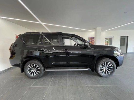 23款丰田霸道2800柴油版车身侧面,普拉多 (配置|询价)的侧面非常高大,魁梧,相信这也是让很多男性消费者都无法抗拒它的原因之一。新车主要是部分车身细节使用黑色处理,例如外后视镜壳和车顶行李架。
