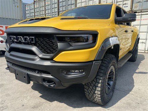 2022款道奇霸王龙传承了道奇Ram 家族高大威猛的造型设计,同时细节部分融入了更多高性能元素,包括经过黑化处理的前格栅,引擎盖两侧的黑色进气口,以及为了容纳巨大的机械增压器而设计的通风口,前倾式车头,相较中规中矩的家族设计无疑多了几分对路面的侵袭感。车内氛围堪称豪华,绝对可以媲美高级轿车。眼神中没有透露出一丝的活泼神韵,唯一展现出来的只有凶狠。前杠是铁质前杠带拖钩,散发这金属气息,沉稳大气。 此外,新车还配备了视觉冲击力更强的黑色轮眉和外露式的拖车钩,看上去十分霸气