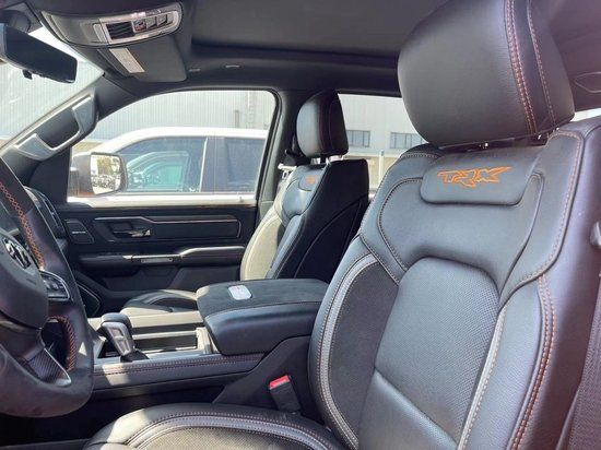 22款道奇霸王龙TRX内饰做工则完全摆脱了美式的粗糙感,边缘、接缝都处理的很精细,真皮座椅各自独立,配有加热、按摩等舒适功能,每个座椅独立配一个操控手柄,各项功能由乘坐者自己控制。
