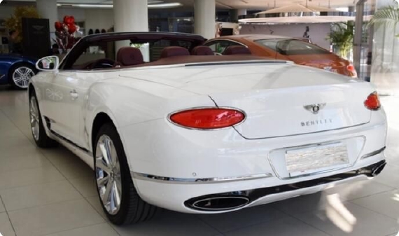 来到车身侧面,相比于硬顶板车型溜背式的线条,敞篷版车型在关棚后营造出的是一种截然不同的视觉感受。其低矮后尾部配合后轮凸起明显的腰线设计营造出车辆极强的运动感与力量感,暗示着宾利欧陆gt有着强大的动力储备。翼子板下方B元素伸出的镀铬饰条从车门底部一直将整车后部包裹,体现出宾利欧陆gt浓浓的奢华感。顶棚颜色提供超过7种颜色方案,其材质还是美观角度在敞篷车领域都是数一数二的存在。