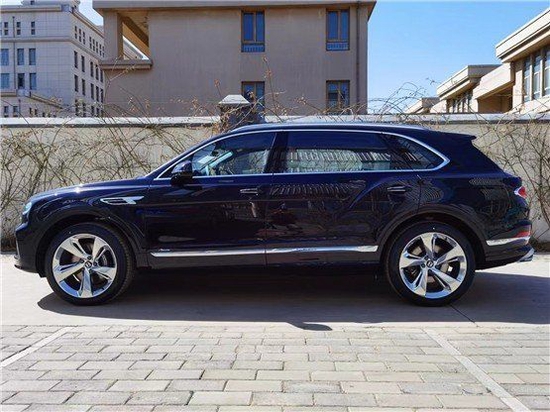 23款宾利添越 (配置|询价)加长前脸镀铬进气格栅的尺寸更大,两侧矩阵式LED大灯立体感十足,采用了水晶切割工艺,不仅照明效果醒目,同时提升了整车的气质,前包围也更激进了。车身线条更加的硬朗,看起来也非常的优雅,底部22寸喷漆轮毂的配备,保持了车身的稳定性。
