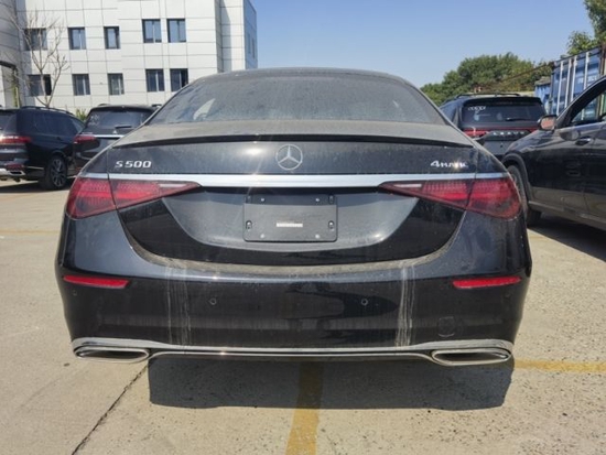 2023款奔驰S500 (配置|询价)前脸轮廓显得更饱满,新车的进气格栅采用了多边形造型,进气格栅上继续采用三条横向的镀铬条和一条纵向的镀铬条装饰,它的进气格栅造型看上去比现款车型更饱满大气。