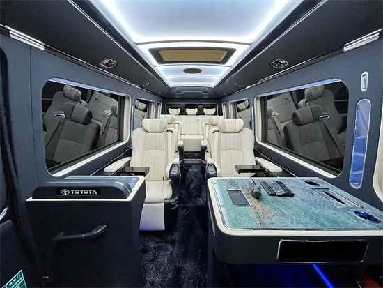 从6座到23座均有设计,无论是作为商务接待政务接待还是用作旅游用车或者是营运版的设计,这一款的都可以满足我们的需要,再加改装在内饰上的改装和设计,丰田考斯特改装商务车甚是受人们的欢迎。而豪华版的商务车和高级版的商务车的最大的区别除了色彩的设计之外还体现在航空外摆门和密封性隐私玻璃的设计。