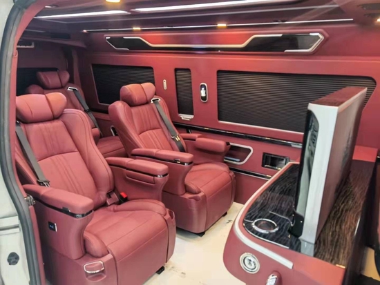 丰田海狮加装商务车改装前后之后判若云端的设计更加体现在内饰灯光的设计上。华通丰业丰田海狮改装商务车原车出厂之时内饰颜色单一,宽敞的内饰空间也需要更加高端的照明。丰田海狮改装商务车,对于照明的设计上,我们可以选在车顶安装LED大灯,满足我们照明的需要。[7座版展示图]