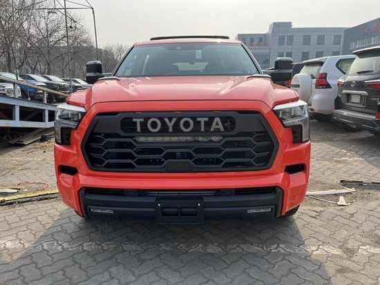 2023款新款丰田红杉外观设计跟坦途一脉相承,同样是宽大粗犷的前格栅,全新的“泪眼”前大灯配在两旁也显得霸气了一些,跟坦途不同的是其前格栅和下包围是独立区隔开来,视觉上更宽大。