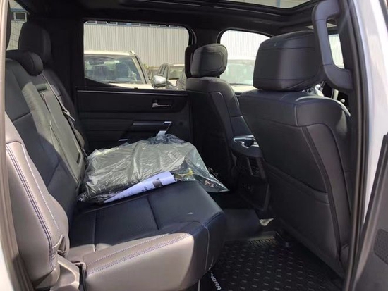 2022款全新丰田坦途TRD版皮卡车内乘坐、后排座椅宽大,足以满足身高195cm的贵宾,第二排座椅可以完全折叠收起,为乘客提供更宽敞的腿部空间,已经达到了中大型车的水平,完全可以满足舒适乘坐的需求,部分特殊的装载给您的路途更添信心。