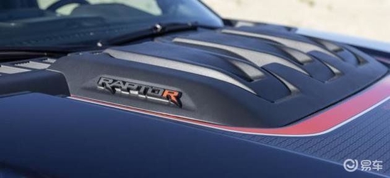 同F-150 Raptor相比,新车在引擎盖上增加了一英寸高的散热器并印有“Raptor R”徽章,散热器面积较大,散热能力也更强。此外,“Raptor R”也应用到了全车的各个地方,彰显其性能版的身份,比如后尾门、进气格栅、散热器、车内装饰等地方都能看到。