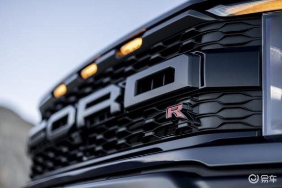 外观方面,新车同F-150 Raptor基本相似,依然是美式肌肉的感觉,只是在细节部分有所调整,硕大尺寸的黑色中网内部镶嵌着FORD四个字母,右下角有着身份标识的红色R徽章,两侧的大灯组和中网相连接,C型的日间行车灯和大灯造型融为一体,再加上分层的前包围设计,整个前脸透露着凶狠和强大的视觉冲击力。