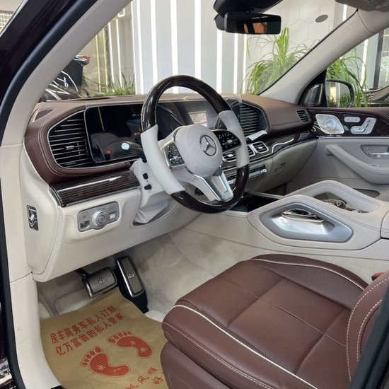 新车采用双色车漆喷涂,配备23英寸多幅熏黑轮毂,D柱之上镶嵌迈巴赫专属LOGO,同时车窗周边的镀铬装饰也凸显了尊贵的身份,整体的车身设计简洁而干练。车尾也采用了大量的镀铬装饰,GLS (配置|询价) 600和Maybach英文标识所使用的字体样式相比以往车型质感更强。