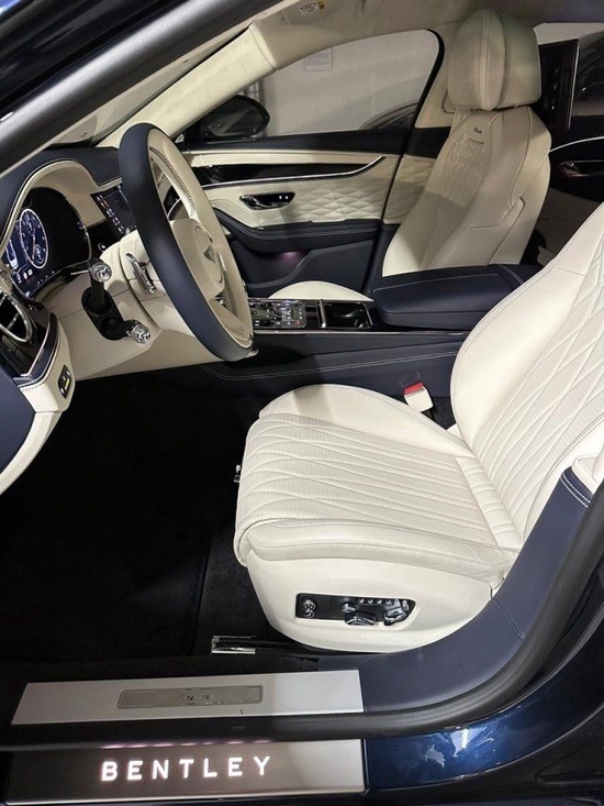 23款飞驰 (配置|询价)V8 雅度版 深宝石蓝/(亚麻白/帝王蓝 B),主要选配:雅度包,22英寸十幅黑色喷漆光亮切割轮毂、旅行配置、后娱、亚麻白钢琴漆配贵族黑等[价格345万]