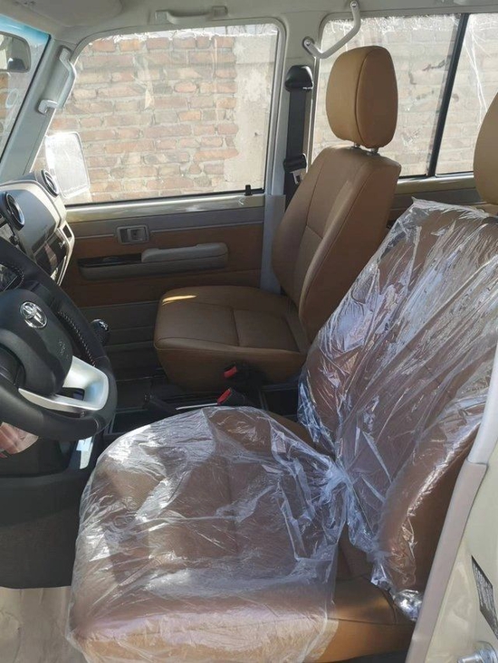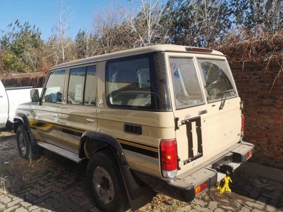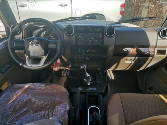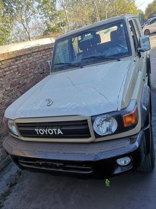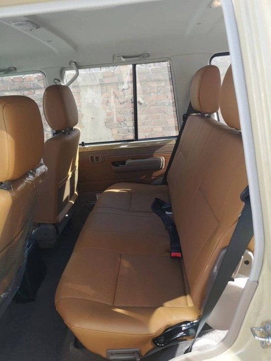 5速手动变速箱 130升油箱 分时四驱 后差速锁 16英寸合金车轮(深灰色)265/70R16C 刹车:前盘后鼓 前悬螺旋弹簧 后悬板式弹簧 ABS+VSC+BA+EBD+HAC+ATRC 2气囊 彩色保险杠,黄车黑杠)高位刹车灯 镀铬外后视镜带电动调节 侧踏板 数字时钟 5座 空调 无钥匙进入 电动门锁 电动车窗 收音机 CD 蓝牙 2个扬声器 胎压监测 USB快速充电 前雾灯 后雾灯 手套箱带钥匙 日行灯/徽章/脚垫/黑色轮眉/散热格栅/彩条/桃木方向盘/桃木档把/桃木内饰/仿皮座椅 -70周年纪念[价格115万]