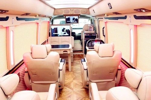 丰田考斯特在改装方面更加注重商务旅行中办公的实用性。车内的真皮航空座椅,电动调节装置可以让您自行调节最舒适的空间距离、靠背以及脚托的角度,特殊的座椅构造,华通丰业增加腰部的支撑,宽敞的空间让您的双腿收放自如,忘却旅途的紧迫感,体验如家般的感觉,缓解您在行车旅途中的疲劳。 内饰增加豪华高档办公桌以桃木及真皮为材料,打造最舒适高端使用的办公环境。