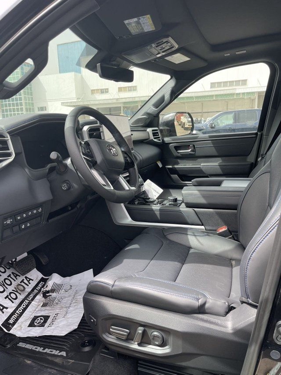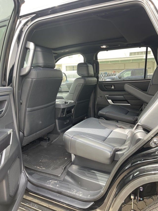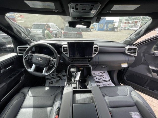 23款丰田红杉车内采用了大量软质材料包裹,部分区域还加入了缝线处理,显得档次感和质感十足。另外车内采用的是四辐式多功能方向盘,并保留了很多物理按键,足以满足驾驶时想要的操控感,车内的科技氛围是通过12.3英寸的全液晶仪表盘和14英寸的中控屏来实现的,中控屏两侧的空调出风口,虽然没有采用时下流行的贯通式设计,但在中控台上对称排列也别有一番风味。另外顶配Capstone车型的内饰将会采用更加豪华的黑白配色方案,并搭配胡桃木装饰面板。
