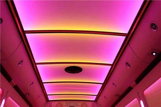 丰田考斯特豪华版在车内顶部配备了空客A380空客顶灯,这种灯光不仅亮度更高,而且可以根据需要任意调节灯的颜色,美观大气而且十分的实用。当然除了顶部的空客等,丰田考斯特车内还配备了很多的灯光包,例如迎宾LOGO灯、迎宾地脚灯、立柱彩灯、空客顶灯、压条灯、阅读灯等等。丰田考斯特奢华定制版车内窗帘全部升级为方便使用的电动升降百褶窗帘。