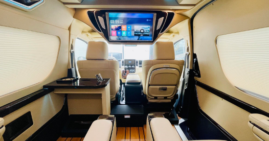 原装进口丰田海狮系列的全新创造舒适的商旅享受。宽畅滑动侧门,与领先商务相谐,乘客出入更自如快捷,富绰空间,长途旅行不再局促而劳累;后排座椅可向上和左右两侧折叠,更大的行李空间。东方众威 改装前后舱隔断,加装升降电视系统,独有的彩色倒车影像系统,可以全方位提供大角度的清晰后视画面,从主动性上进一步提高了车辆的安全性能。