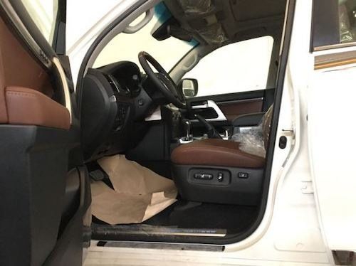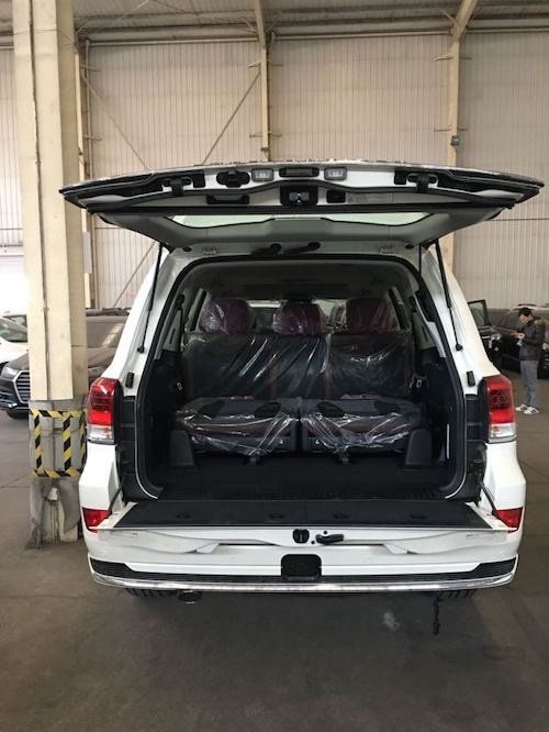 中东版20款丰田兰德酷路泽5700GTS运动版前脸整体凸显彪悍与霸气,锐利的前大灯与镀铬进气格栅紧紧相连,极有一副锐不可当的架势。镀铬装饰的前中网与后灯镀鉻装饰加上后镀鉻架显得更具军人般的硬朗气质。接方形的前氙气大灯带自动水高度调节和自动清洗功能,对于经常走一些烂路的它来说,是非常实用的装备,同时也能提高一定的安全性。