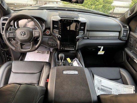 22款道奇霸王龙在内饰部分进一步强化了其高性能版本的形象,中控台和座椅随处可见的TRX标识便是最好的例证。同时,作为道奇家族的旗舰车型,新车还配备了12英寸竖置中控屏幕,除了支持蓝牙、导航和车载Wi-Fi等常见功能,还支持Apple CarPlay和Android Auto手机映射。