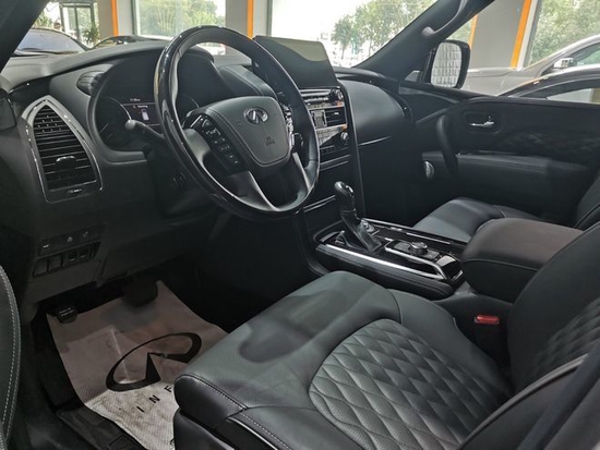 配置:ProActive顶配,5.6升V8发动机,400马力,413磅-英尺,单屏12.3英寸信息娱乐触摸屏,苹果CarPlay和安卓Auto,盲点警告(BSW),牵引能力-8500磅,全景,真皮方向盘加热,10向电动驾驶员座椅带记忆,8向电动乘客座椅,英菲尼迪智能钥匙,按钮点火照明,远程遥启,三区空调,前排座椅加热,Bose 音响,17扬声器,后排娱乐系统,7座,22轮配有全天候性能轮胎,自适应自动调平大灯前照明系统,智能后视镜,智能巡航控制(全速范围),车道偏离预防,镀铬格栅包围,带有黑色网眼和下部保险杠,深色镀铬后尾门饰件,深色镀铬侧通风口,第二排船长椅可翻转,第三排可轻松进入,第二排长条座椅60/40分割折叠,空气净化器,盲点侧撞干预,车道偏离预防。