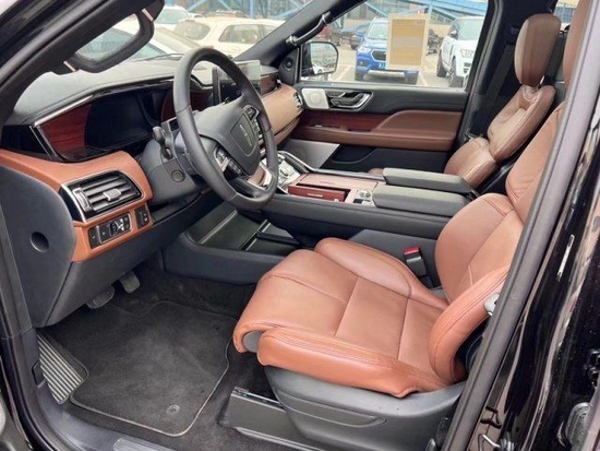 23款林肯领航员3.5T的内饰非常奢华,多功能方向盘,中控台的造型与宽大的车身相呼应,新车全部真皮包裹座椅,内饰采用桃木搭配设计,高贵典雅,加高加大的车身除了增加内部空间外,还给人营造一种尊贵典雅的感觉。最新林肯领航员新车采用了2+2+3的座椅布局,第二排采用了两个独立座椅,座椅内侧均配有扶手,舒适度超强。