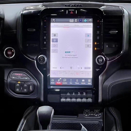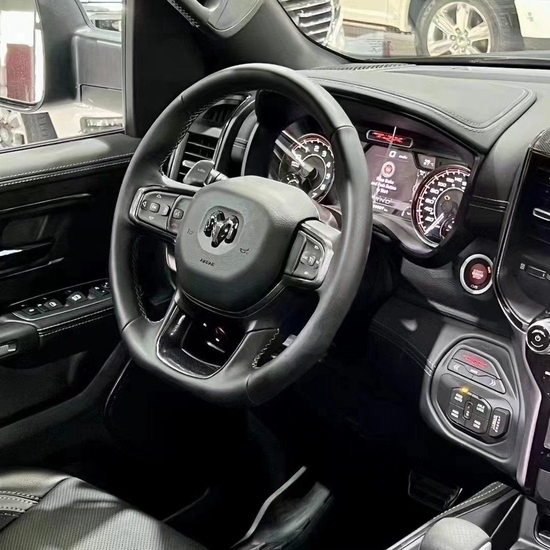 2022款道奇1500霸王龙 内饰部分进一步强化了其高性能版本的形象,中控台和座椅随处可见的TRX标识便是最好的例证。同时,作为道奇家族的旗舰车型,新车还配备了12英寸竖置中控屏幕,除了支持蓝牙、导航和车载Wi-Fi等常见功能,还支持Apple CarPlay和Android Auto手机映射。