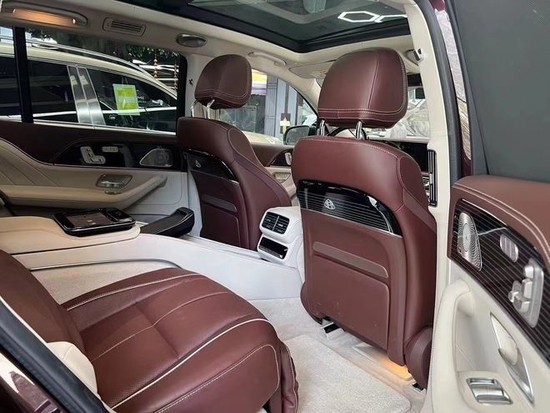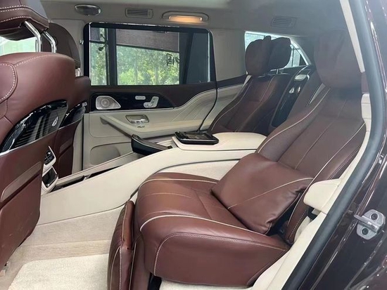 奔驰GLS450升级迈巴赫GLS600提供四座布局,四座车型第二排独立座椅相比普通版GLS更加靠后,并且带有巨大的腿拖,其后排座椅最大倾斜角度大43.5度,后排腿部空间最大达1.34米。中央由冰箱、控制台、储物空间和手机无线充电台等进行贯穿,呈现出类似于迈巴赫S级 (配置|询价)一样的头等舱设计。