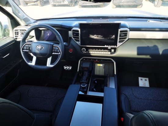 23款丰田红杉四辐式多功能方向盘、并保留了很多物理按键、足以满足驾驶时想要的操控感、车内的科技氛围是通过12.3英寸的全液晶仪表盘和14英寸的中控屏来实现的、中控屏两侧的空调出风口、虽然没有采用时下流行的贯通式设计、但在中控台上对称排列也别有一番风味。