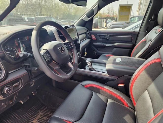 2022款道奇霸王龙传承了道奇Ram 家族高大威猛的造型设计,同时细节部分融入了更多高性能元素,包括经过黑化处理的前格栅,引擎盖两侧的黑色进气口,以及为了容纳巨大的机械增压器而设计的通风口,前倾式车头, 联系电话:彭经理:17720015375《同微信》相较中规中矩的家族设计无疑多了几分对路面的侵袭感。车内氛围堪称豪华,绝对可以媲美高级轿车。眼神中没有透露出一丝的活泼神韵,唯一展现出来的只有凶狠。前杠是铁质前杠带拖钩,散发这金属气息,沉稳大气。