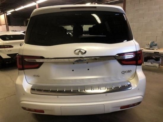 QX80 (配置|询价)的前脸设计非常简洁,目力所及之处,线条简洁、气场强大,气势上虽达不到咄咄逼人,但是唬人的能力依旧不容小觑。与老款车型相比,梯形进气格栅所带来的横向延伸感要比现款车型更加强烈,前大灯组的位置也有了明显的提升,而且发动机盖整体向前延长,这也直接带来了更为犀利的视觉感。气势上的强大绝不只前脸这么简单,对于QX80来说,其庞大的尺寸就是展现气场最佳的代表。现款车型长宽高分为别5303、2030和1927mm,轴距为3075mm,新款车型有过之而无不及。温馨提示:请勿相信过低价格 价格靠谱更重要。张经理电话17695561666(同微信)