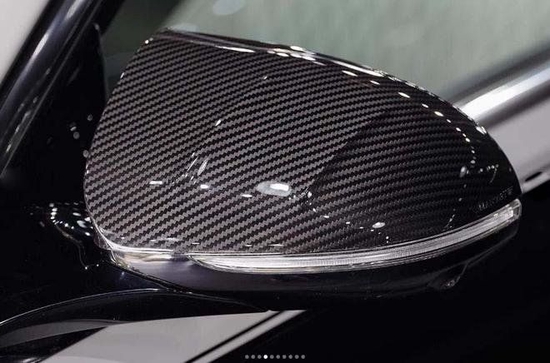 车头部分,格栅边框、前唇和行车灯灯罩都已经被完全碳化,黑化处理的中网更是运动感满满,包括大家肉眼可见的那一块白的引擎下依旧是一块碳纤维,迈莎锐MANSORY简直可以被称为碳纤维的终结者。