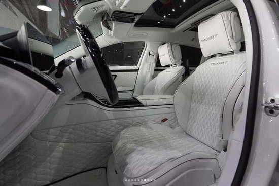转到车内,与外观呼应,迈莎锐MANSORY定制版迈巴赫S680大面积使用白色内饰,氛围温馨,质感高端,真皮菱形座椅、麂皮绒面板、不仅好看,摸上去舒适度也是相当高,小到地垫、扶手都是高档材质打造,在车内许多细节之处,迈莎锐MANSORY的字母标识都有出现,彰显整车与原本不同的身份,更有浪漫感充足的星空顶赋予整车个性的诗意气氛,让车主接受尊贵的礼遇。