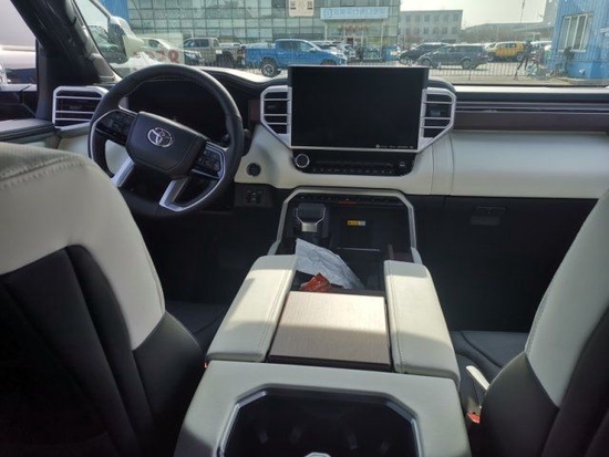 23款丰田红杉车内采用了大量软质材料包裹,部分区域还加入了缝线处理,显得档次感和质感十足。任经理13836729331 (电话同微信)另外车内采用的是四辐式多功能方向盘,并保留了很多物理按键,足以满足驾驶时想要的操控感,车内的科技氛围是通过12.3英寸的全液晶仪表盘和14英寸的中控屏来实现的,中控屏两侧的空调出风口,虽然没有采用时下流行的贯通式设计,但在中控台上对称排列也别有一番风味。另外顶配Capstone车型的内饰将会采用更加豪华的黑白配色方案,并搭配胡桃木装饰面板。